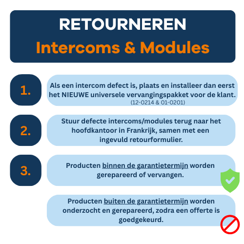 Volg deze stappen als uw intercom of module door onze support afdeling is beoordeeld en geschikt is bevonden voor een reparatie.