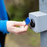 Deze ronde badge lezer vervangt het gebruik van sleutels. Sleutels kunnen makkelijk en goedkoop worden vervangen door elektronische badges, ook wel Key-Fobs genoemd.